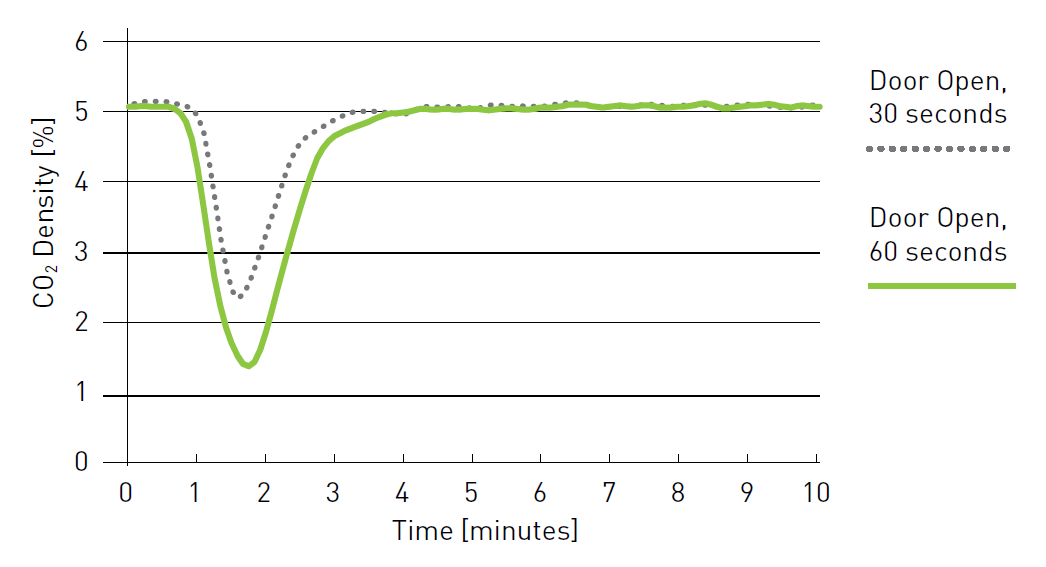 IR sensor achieves ultrafast CO2 recovery without overshoot, even following multiple door openings.